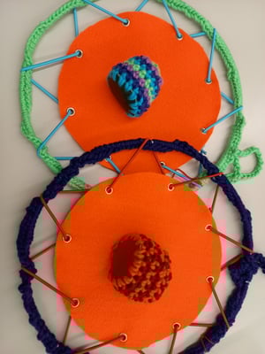 der reif, wie auch der ball sind aus lauter festen maschen gearbeitet.