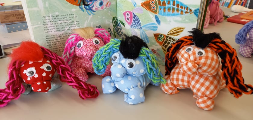 ... fleissig wurden feste maschen gehäkelt und rechte maschen gestrickt. mit viel fantasie bekam jeder mampfimampf ein einzigartiges gesicht aus filz. ein täschen für briefe, kleine fundstücke, gespartes und verdientes.